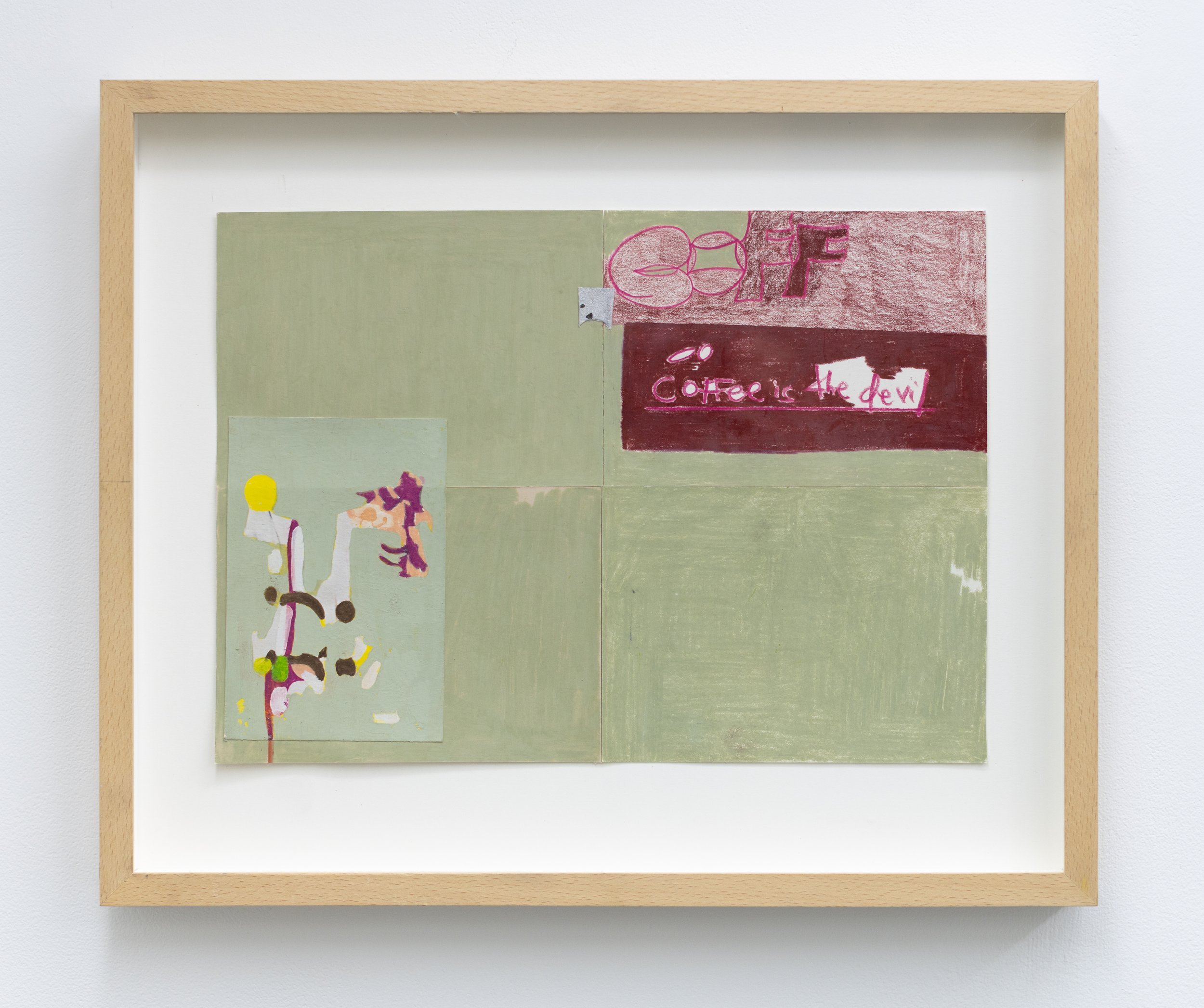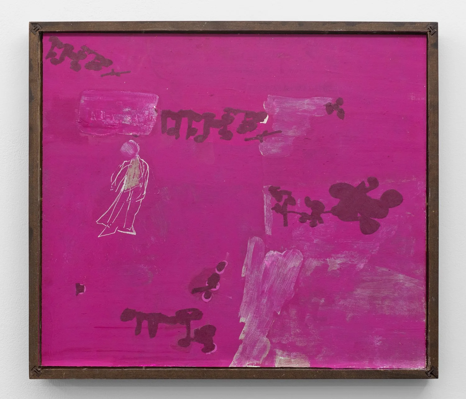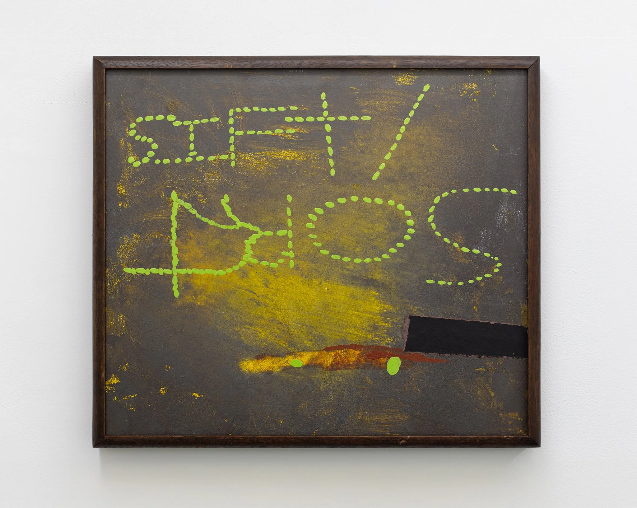 Acrylic, flashe, marker and paper on panel in artist’s frame