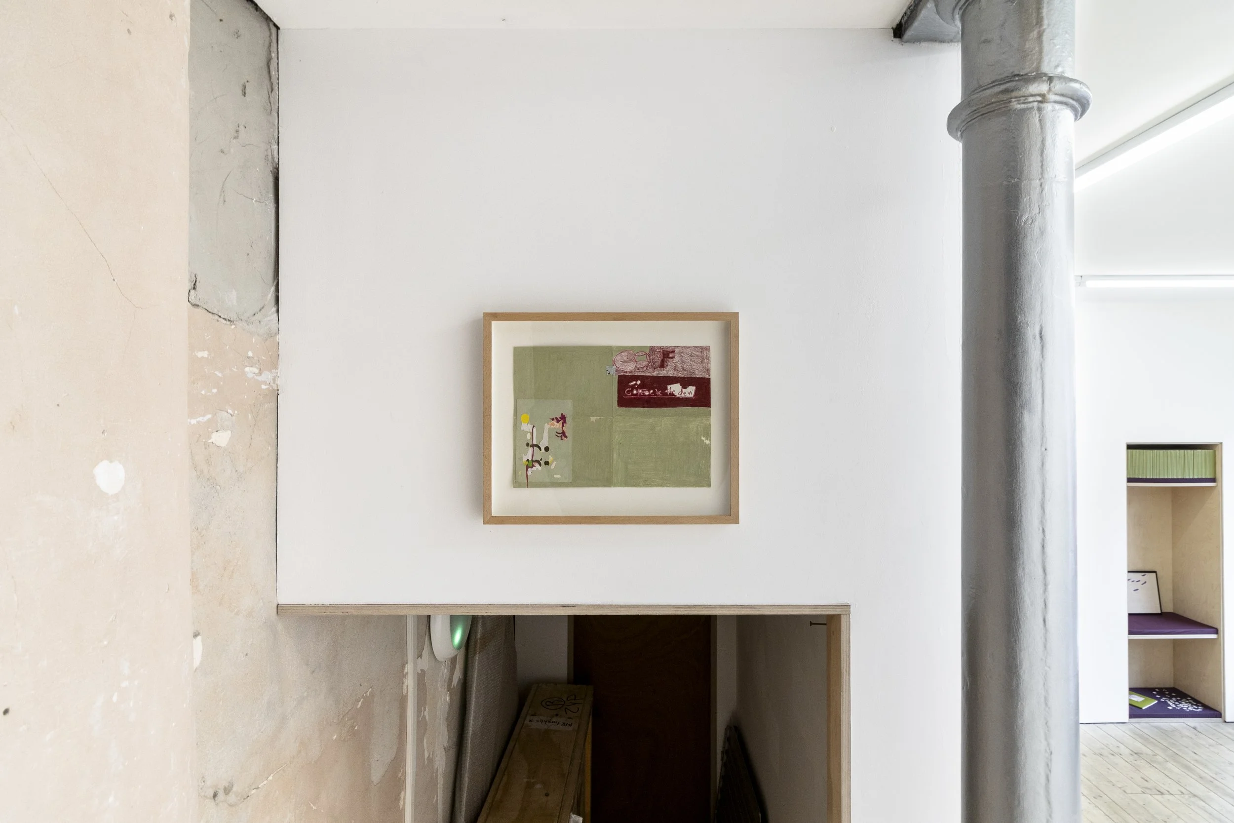 Acrylic, watercolor and paper on panel in artist's frame